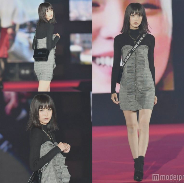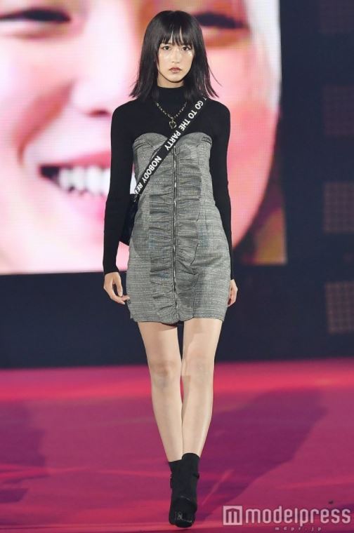 「Bershka」ステージに登場した土生瑞穂さんは、胸の下まであったロングヘアを肩の辺りまでバッサリとカットし、カラーも暗くなった新ヘアを披露してくれました。
