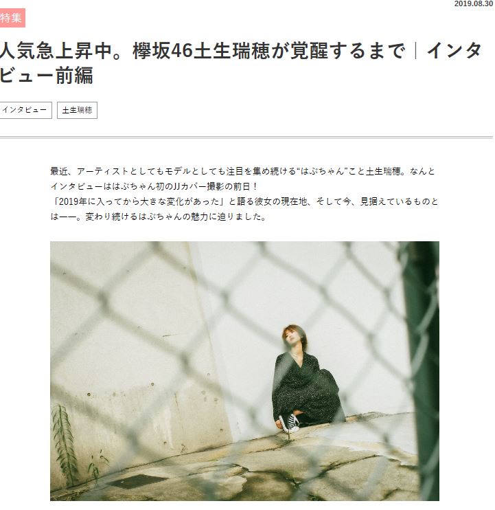 土生瑞穂が『JJ』の表紙に初抜擢!モデルとして大躍進!の記事まとめ