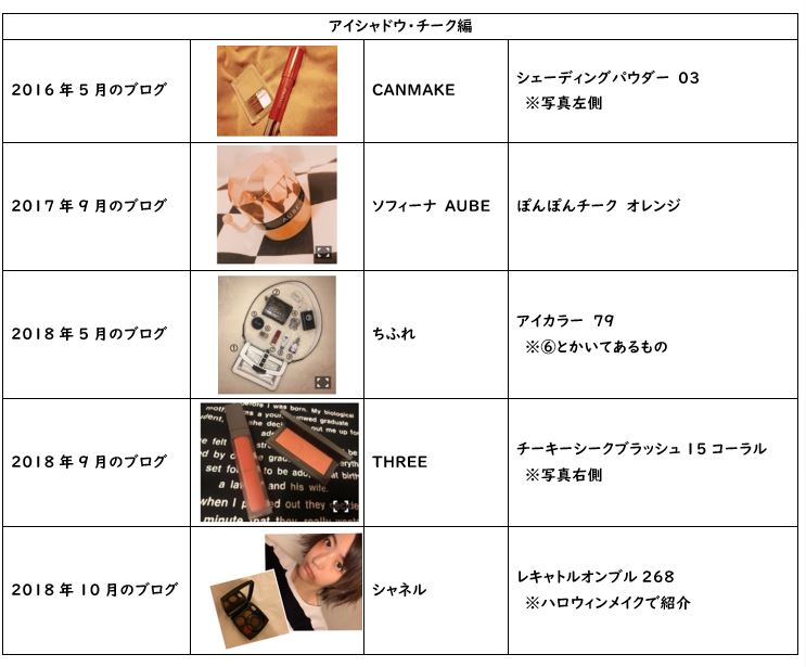 続いては、使い方によってはガラッと雰囲気が変わる「アイシャドウ」「チーク」の紹介です。