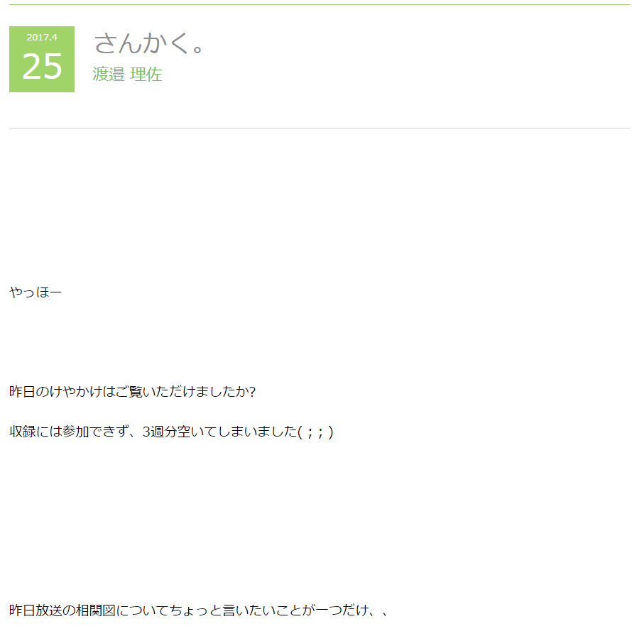 今回の収録に参加できなかった渡邉理佐さんが公式ブログにて、相関図に対する自身のコメントを出しております。