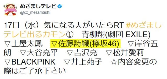 【欅坂46】佐藤詩織 5/17放送「めざましテレビ」に出演決定!ロッテ「キシリトール20周年プロジェクト」発表会の模様を放送かhttps://t.co/TPoYZIrHSg