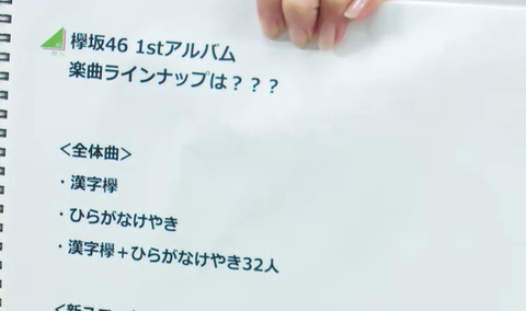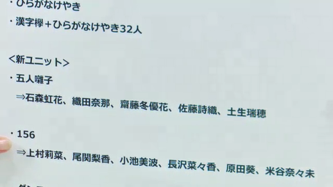 ・漢字ひらがな混合ユニット:菅井友香、守屋茜、加藤史帆、佐々木久美