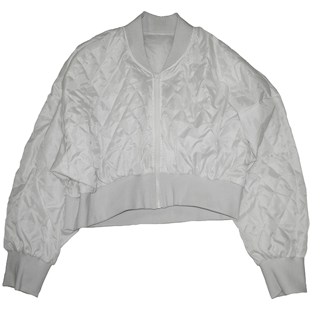 お団子ヘアに白のブルゾン……いつもと違ってスポーティーな雰囲気です。