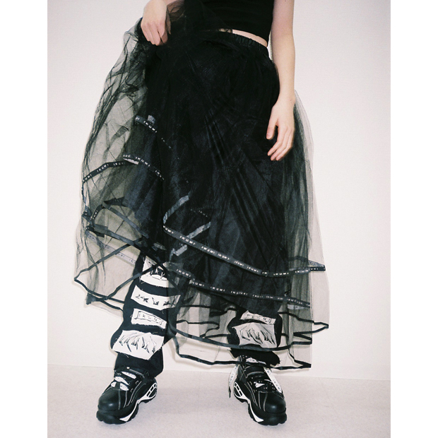 クールな表情でオーガンジー素材のスカートを揺らして歩く姿は、妖精のような可憐さもありますが、それを上回るオーラが出ています。